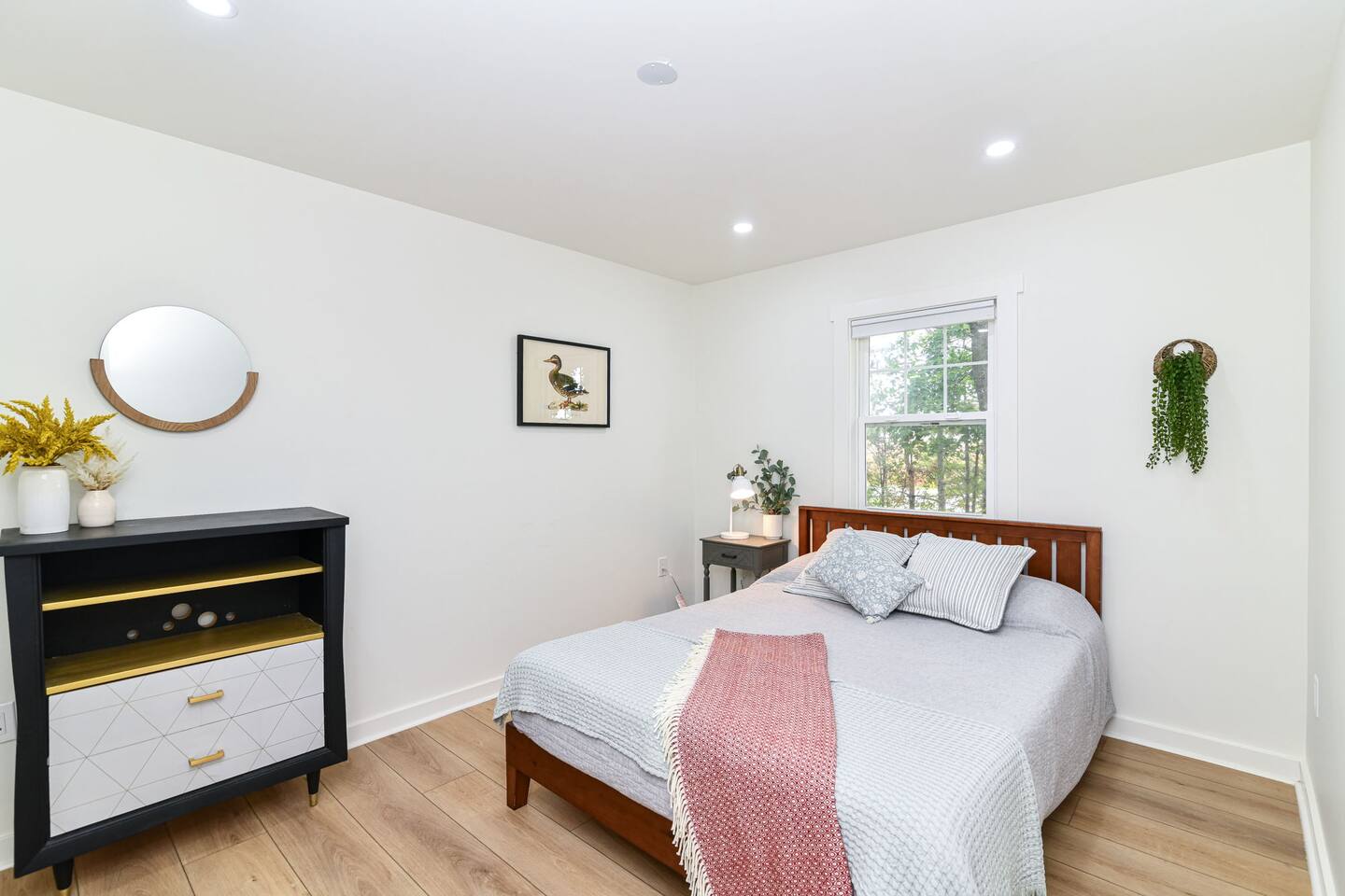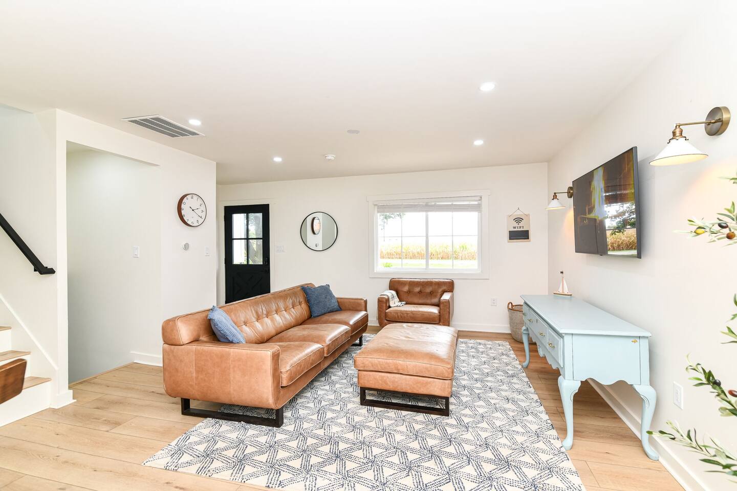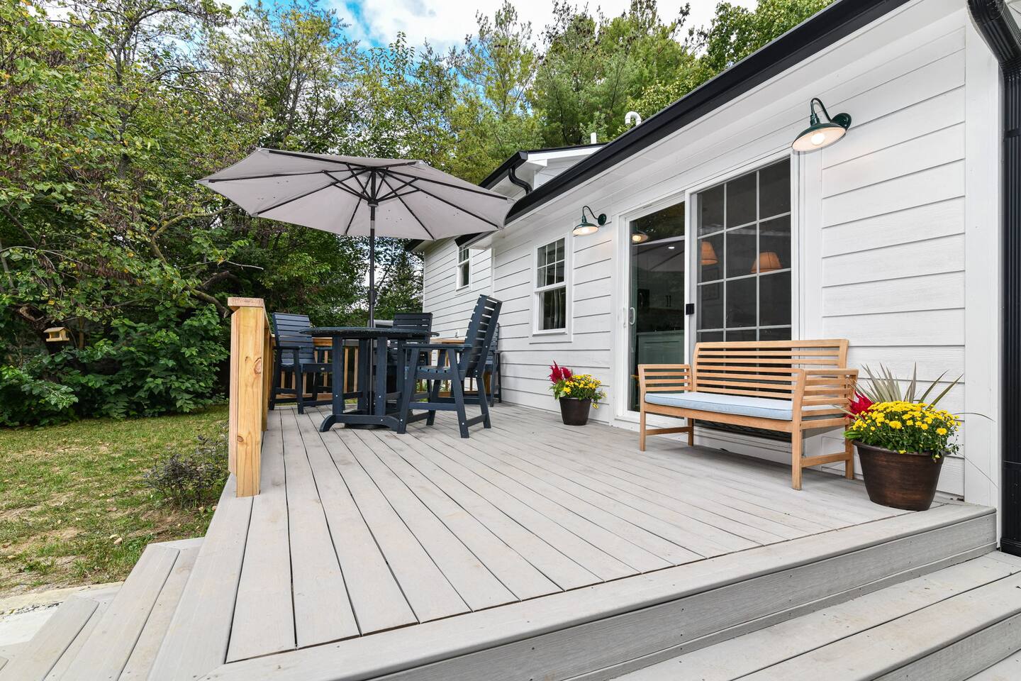 Relax with the whole family at Florence Cottage. Brand new home- quaint, quiet, and a great mix of country charm with stylish design. The house offers 4 bedrooms, 2 full bathrooms. The master suite has its own spacious master bathroom. Bedroom 2 and 3 are furnished with queen beds. Bedroom 4 offers a bunk bed. The home sits on an acre with stately mature trees, a fabulous front porch to take in the sunrise & then a new deck overlooking the large back yard boasting amazing sunsets at night!