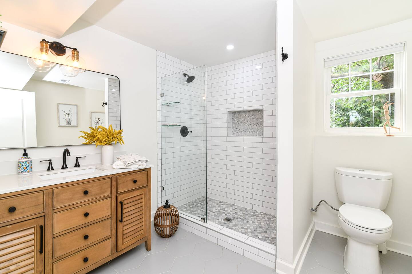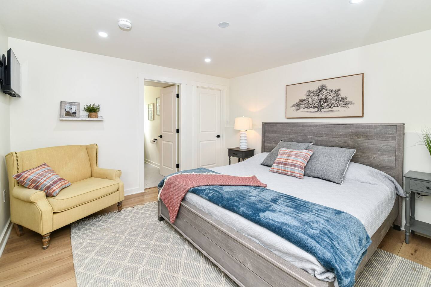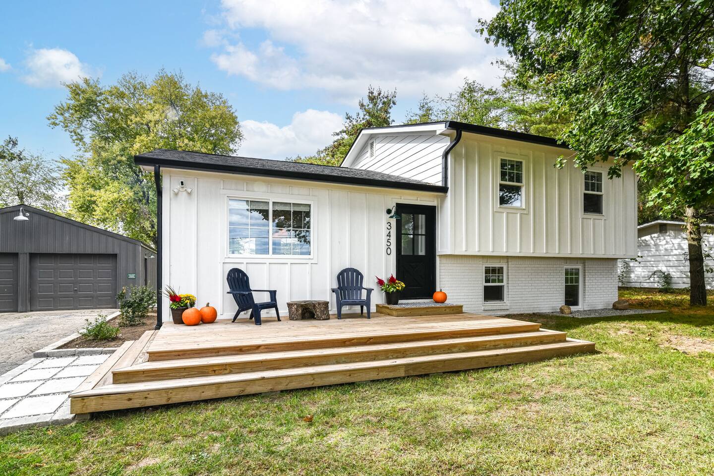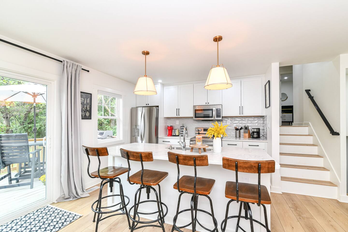 Relax with the whole family at Florence Cottage. Brand new home- quaint, quiet, and a great mix of country charm with stylish design. The house offers 4 bedrooms, 2 full bathrooms. The master suite has its own spacious master bathroom. Bedroom 2 and 3 are furnished with queen beds. Bedroom 4 offers a bunk bed. The home sits on an acre with stately mature trees, a fabulous front porch to take in the sunrise & then a new deck overlooking the large back yard boasting amazing sunsets at night!