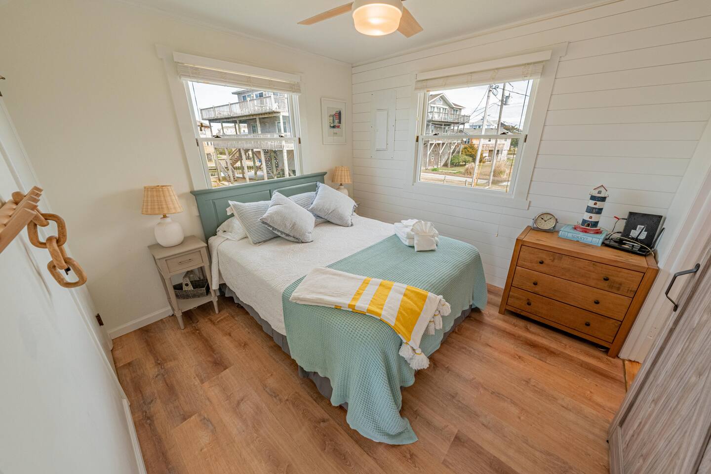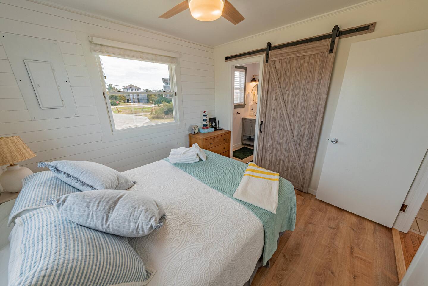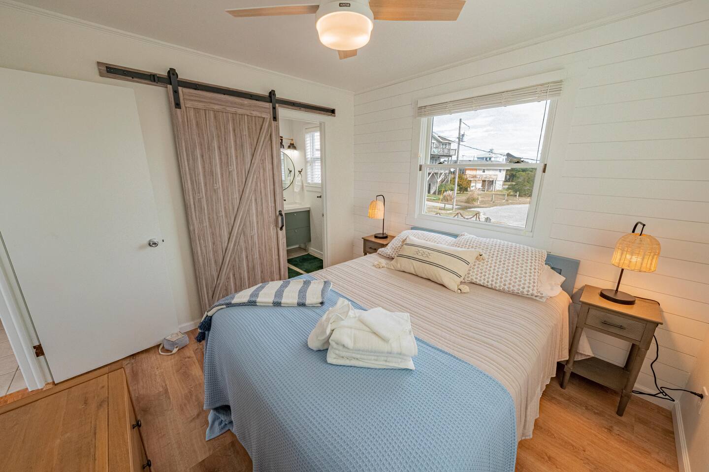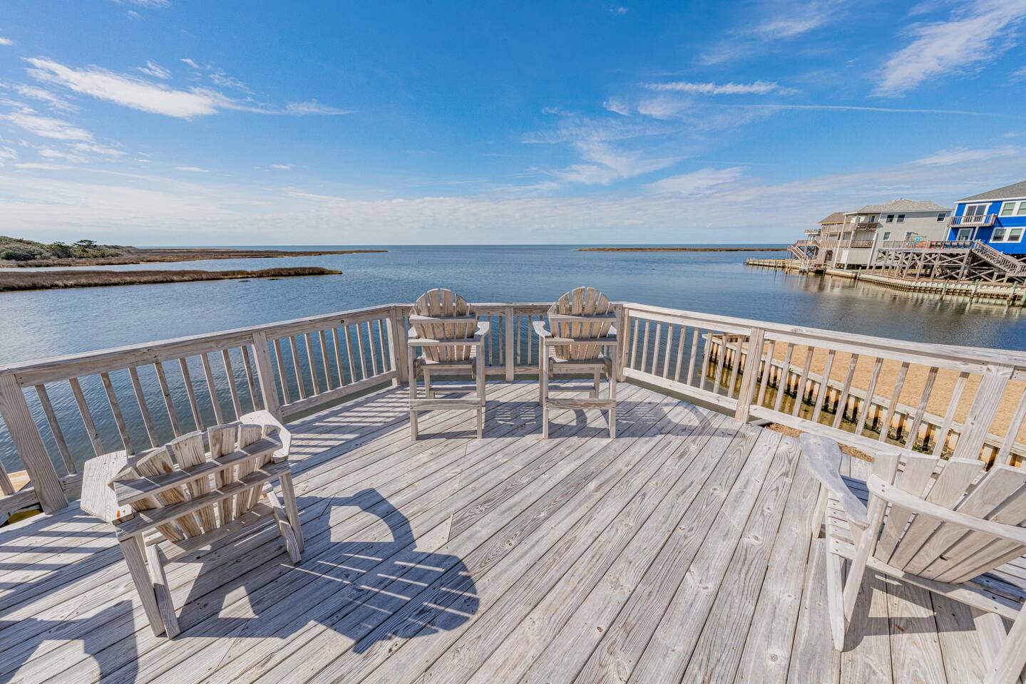 Step inside this freshly renovated home with an open floor plan and gorgeous views! This 3 bedroom, 2.5 bath cottage has a large expansive deck overlooking the Pamlico Sound. 2 bedrooms located on the main level offer a queen bed and a full bathroom in each. One bathroom offers a shower, while the other offers a bathtub/shower combo. Upstairs, you will find a playful bunk room with 4 twin beds, a pullout twin couch, and a 1/2 bathroom. There is a smart tv in the bunk room as well as one in the living room. Board games and books galore. The deck offers a hot tub, multiple lounge chairs to take it all in, and a picnic table underneath the covered porch. Down the patio steps you will find a heated outdoor shower, owners outdoor closet with 2 paddle boards, 2 kayaks, beach chairs, beach wagon, toys/games and a cooler. The water is fairly shallow and sandy just off the deck/pier so a good spot for swimming, playing in the water and launching your boards! Perfect spot for kite surfing and windsurfing too.