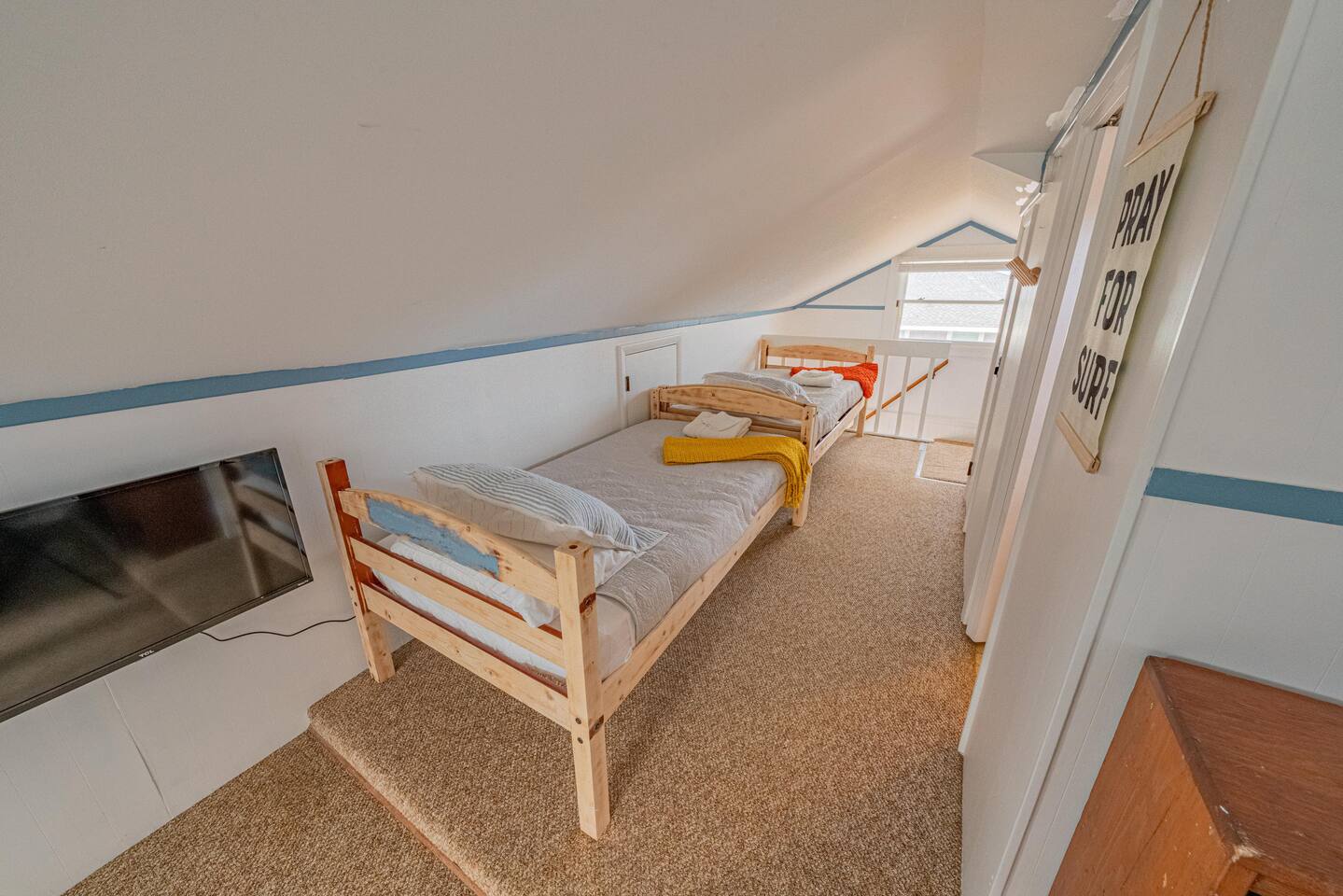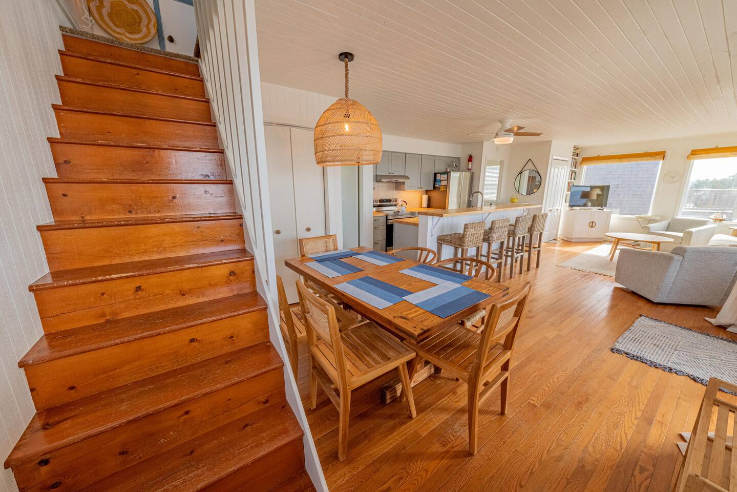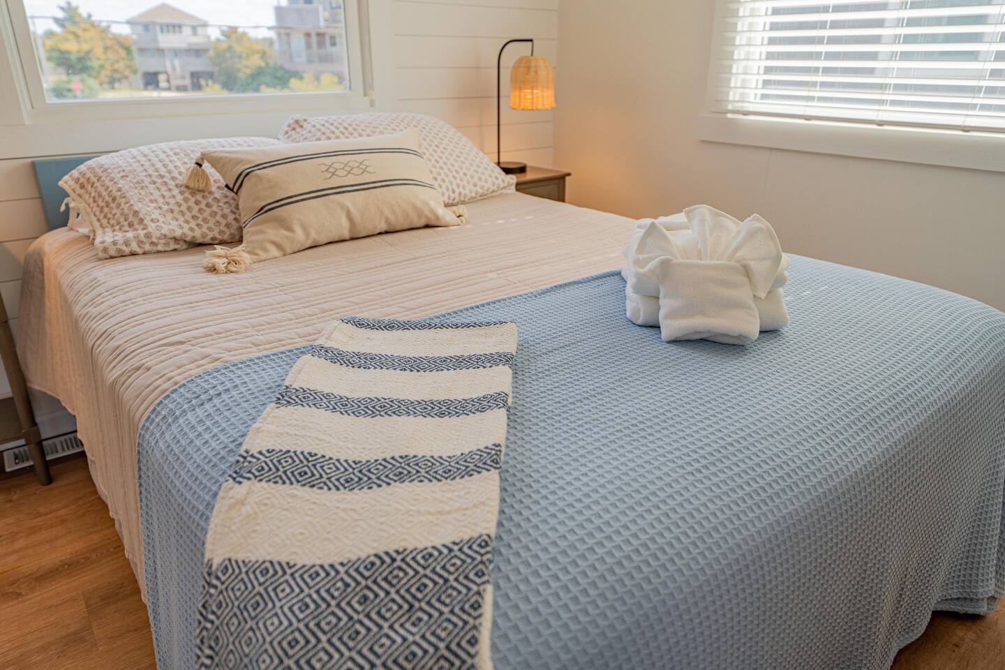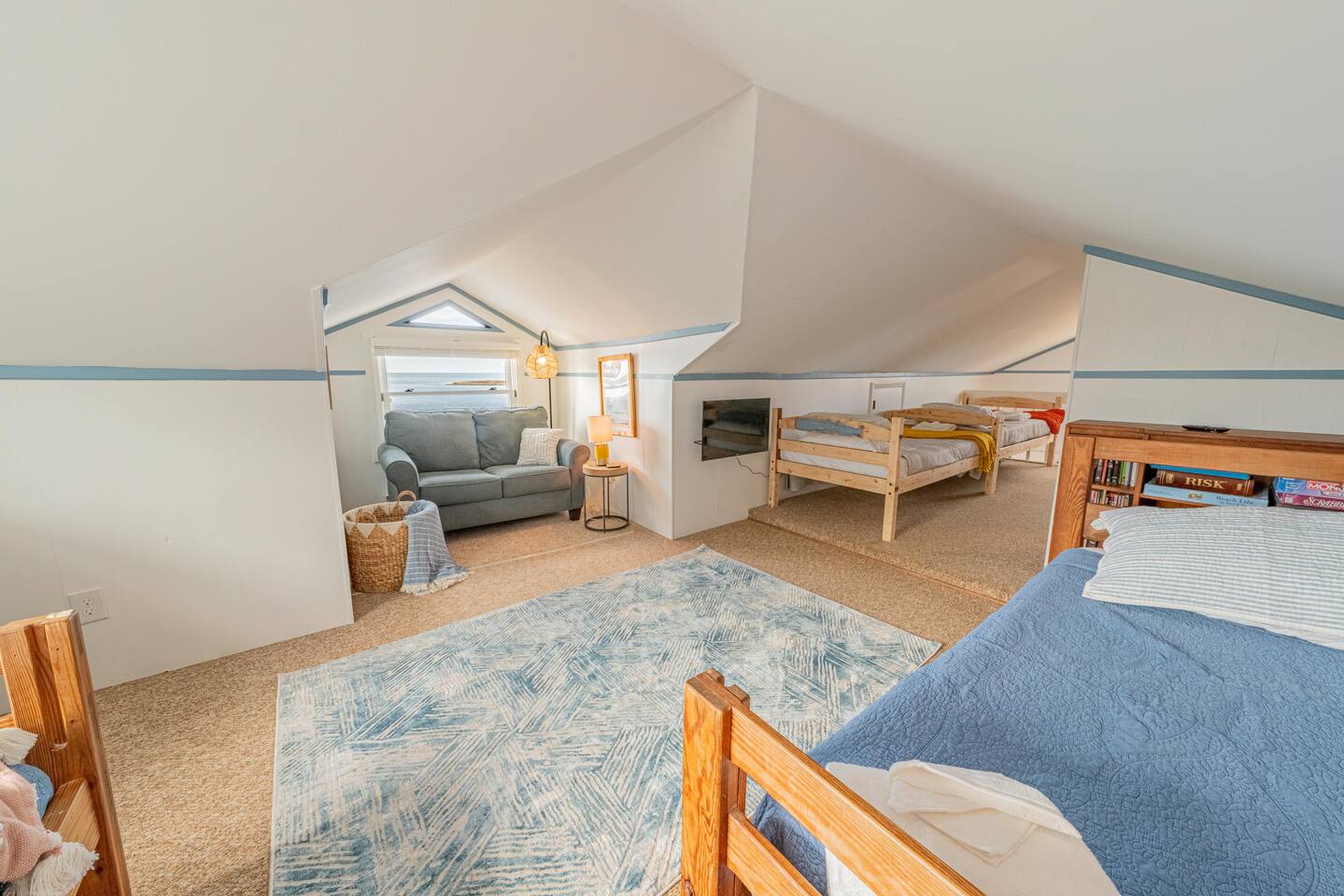 Step inside this freshly renovated home with an open floor plan and gorgeous views! This 3 bedroom, 2.5 bath cottage has a large expansive deck overlooking the Pamlico Sound. 2 bedrooms located on the main level offer a queen bed and a full bathroom in each. One bathroom offers a shower, while the other offers a bathtub/shower combo. Upstairs, you will find a playful bunk room with 4 twin beds, a pullout twin couch, and a 1/2 bathroom. There is a smart tv in the bunk room as well as one in the living room. Board games and books galore. The deck offers a hot tub, multiple lounge chairs to take it all in, and a picnic table underneath the covered porch. Down the patio steps you will find a heated outdoor shower, owners outdoor closet with 2 paddle boards, 2 kayaks, beach chairs, beach wagon, toys/games and a cooler. The water is fairly shallow and sandy just off the deck/pier so a good spot for swimming, playing in the water and launching your boards! Perfect spot for kite surfing and windsurfing too.